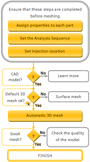 The simplest way to generate a quality mesh is to follow the flowpath indicated in yellow.