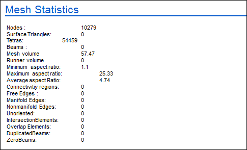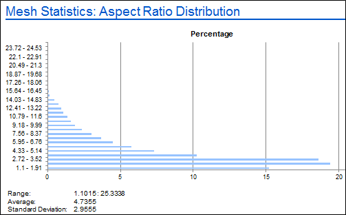 These commands report the aspect ratio distribution, in addition to the mesh statistics: