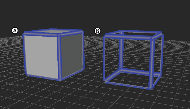 Edge Cartoon shader A. With the Default shader. B. Without the Default shader.