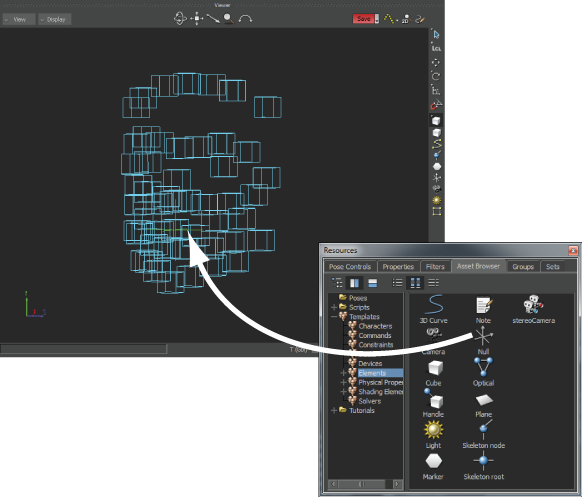 - From the Elements folder in the Asset browser, drag a null into the scene.