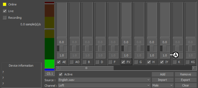 Note: Before adjusting weighting, make sure the Threshold level is set at an appropriate value. For example, if a model does not pronounce the UW phoneme with enough emphasis, you can boost the shape by increasing the Weighting value for that phoneme.