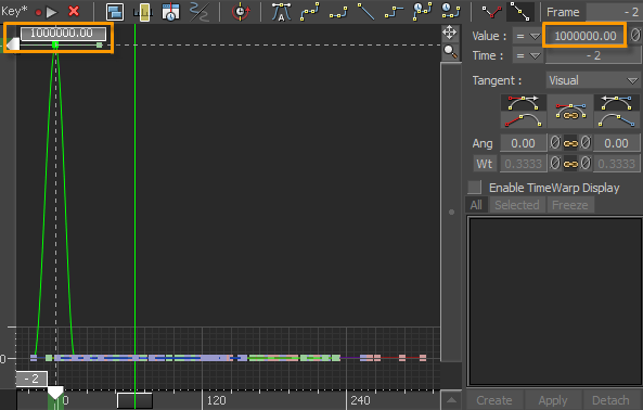 The Transformations preference setting contains the Maximum Edit Value field, which lets you determine the maximum number you can enter into a value field in the FCurves window. The default number is 100000. You can increase this value up to 1, 000, 000, and click OK.