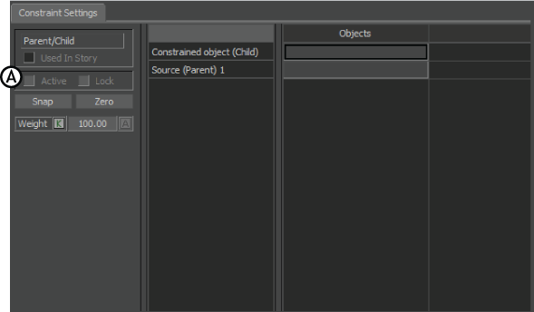 You can also use the Story window to activate and disable scheduled Parent/Child constraints.