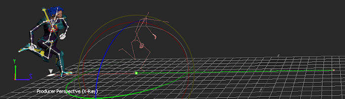 Frame 0: Character's ghost and clip ghost vectors displayed in the Viewer wiindow