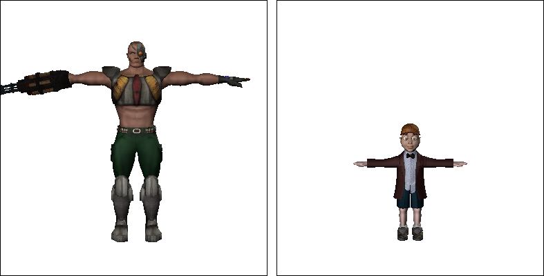 All 3D character models have a rigid skeleton as their underlying structure in common: . The skeleton is covered by a skin (or mesh) on which textures, colors, facial, and body features are applied to distinguish the appearance of a model.