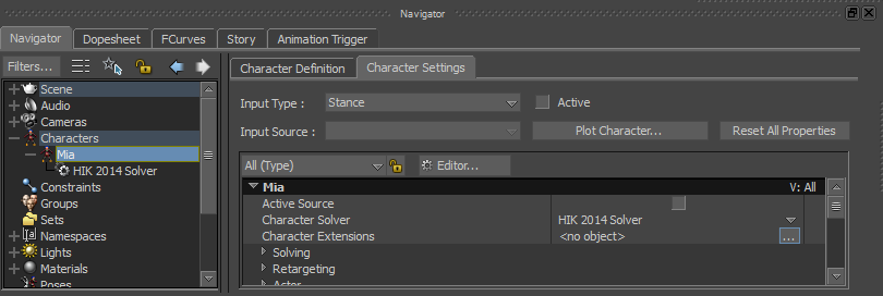 For more information about HumanIK, see HumanIK (HIK) character solving.