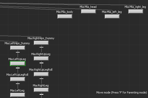 Mia’s LeftUpLeg node mapped to MotionBuilder LeftUpLeg