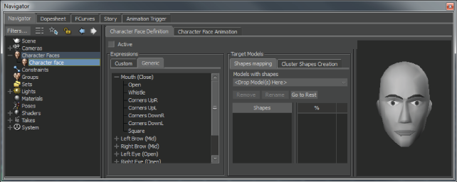 After you have added a Character Face to the scene, you can begin to define the expressions for your character’s face.