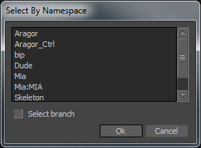 You can select objects or branches based on their namespaces using the Select by Namespace dialog box.