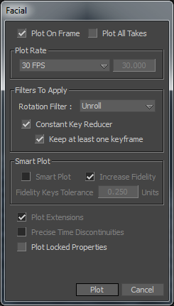 After you created your facial animation, you need to plot the animation if you want to import it into other compatible 3D software.