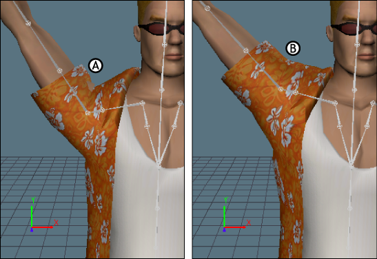 Mesh deformation A. Shoulder mesh deforms at an unnatural angle B. Shoulder mesh deforms naturally