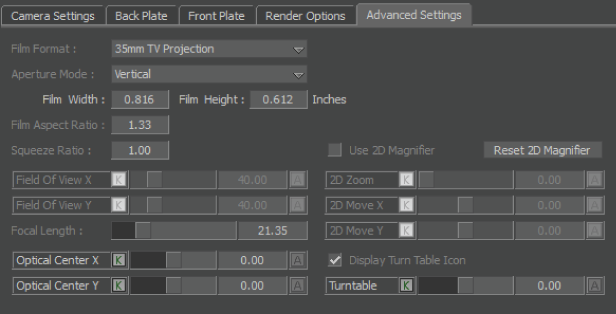 Camera Advanced Settings pane