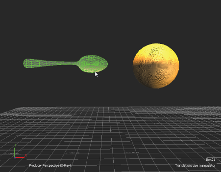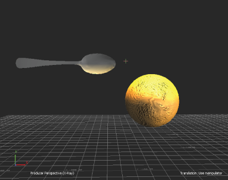 This example shows two models, Orange, and Spoon. This workflow shows a joint applied to the models that is then set so that Orange swings from the end of Spoon.