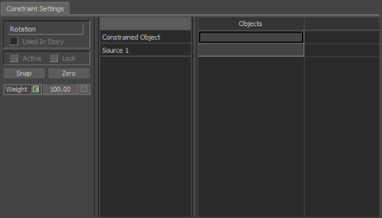 The Rotation constraint requires the following objects: