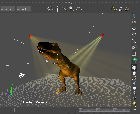 Each camera view indicates which way it is facing with an axis in the bottom left corner of the Viewer window. The active display mode also displays in the Camera Label.