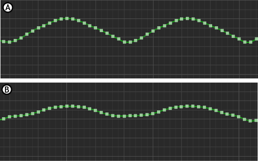 Smooth A. Original curve B. Smooth applied with Use Quaternions