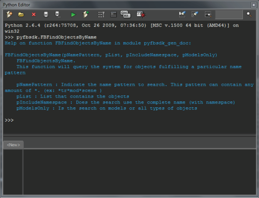 The Python Editor interactive console displays help related to the command entered in the interactive console.