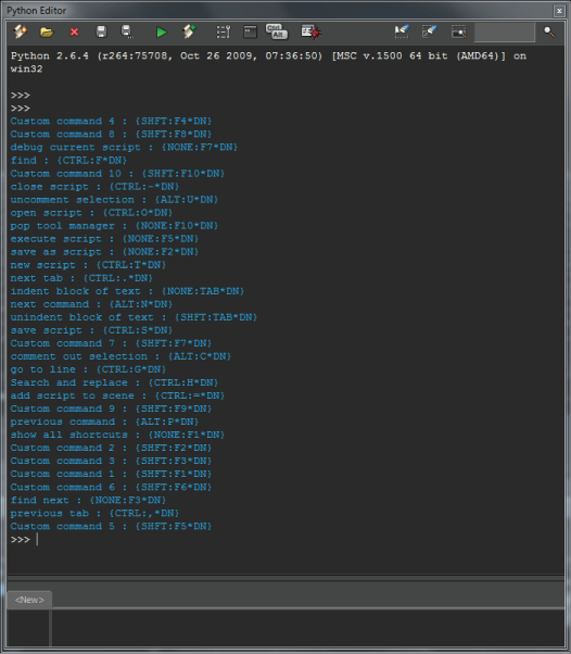 Python Editor commands keyboard shortcuts