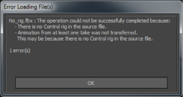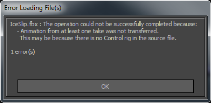Error Loading Files dialog box: Animation was not transferred