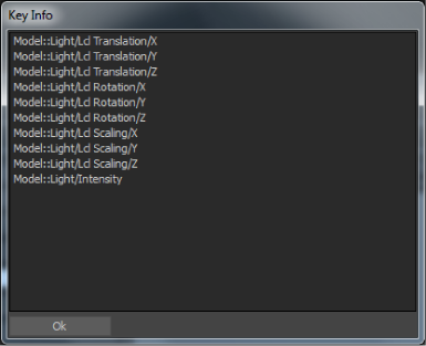 When you right-click a keyframe, the Key Info option displays in the context menu and lets you open a Key Info window. The Key Info window displays information about the keyframe you clicked.