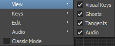 Displays by default the Visual Keys, Ghosts, Tangents, and audio settings.