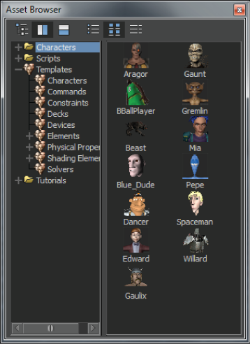 Asset browser showing custom icon