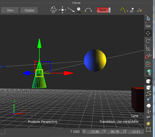 The Viewer window Manipulation and Transformation mode tools let you activate the Translation, Rotation, or Scaling modes.