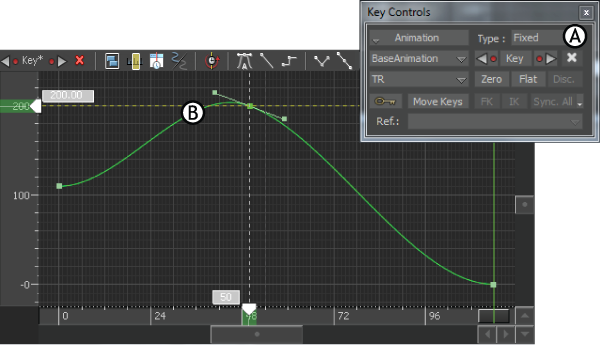 Allows you to reset the Angle values for the right and left tangents of a selected keyframe to zero (B and D in the figure above). Tangents set to zero are flat, and display horizontally.