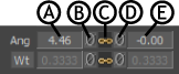 Angle settings A. Angle for left tangent B. Reset Left Angle/Auto option C. Link/Unlink Left & Right Angle/Auto option D. Reset Left Angle/Auto option E. Angle for right tangent