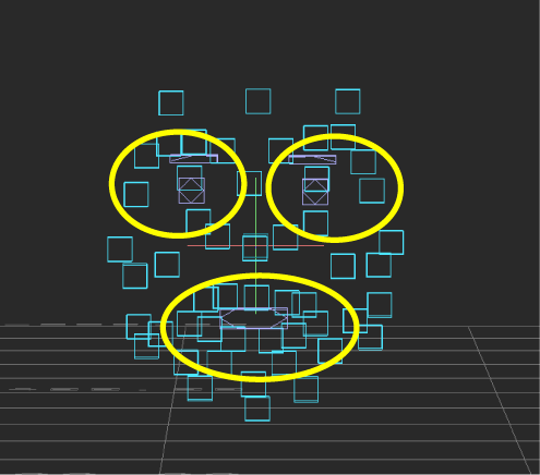 To display the bounding boxes in the Viewer window, activate Display after clicking Find. Bounding boxes appear as purple cubes around the eyes, eyebrows, cheeks, and mouth of your face model.