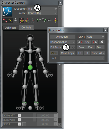 A. Full Body is the Keying group in the Character Controls window B. Full Body displays in the Key Controls window