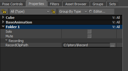 Before you begin recording, you need to set the recording path for your Story Folders and Tracks. The recording path needs to be defined for each track you want to record with the exception of tracks within a Folder. For example, you can set a path for a Folder in the Story window and have the Tracks within that Folder point to the same path. You can also set a path for a Folder in the Story window and another path for the Tracks within that Folder. This applies also to nested Folders and Tracks. Complete lower-level paths overwrite higher-level paths, while a hierarchy of incomplete paths is assembled to form a complete path. This enables you to specify only the subfolder in the track, while the folder contains the base path..