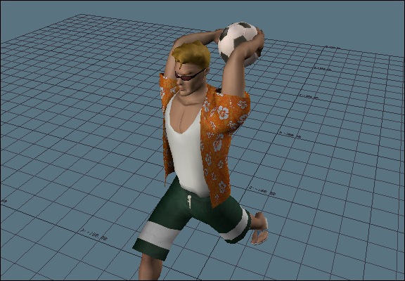 For example, in the following image, there is a Parent-Child constraint between the soccer ball and Surfer’s hands. The soccer ball does not have keyframe animation, but as the Surfer moves, so does the ball. You can also animate the constraint itself, so that the ball follows Surfer’s hands only at certain times.