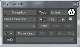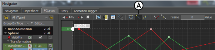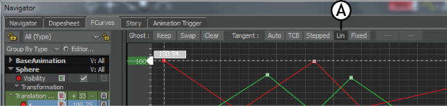 FCurves window (detail) in Classic Mode A. Linear interpolation type selected for the keyframe selection