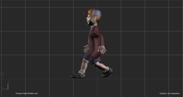 Shows the scene with the YZ plane defining the grid. The Z-axis is left and right, and the Y-axis is up and down. The X-axis points toward the camera. This camera view only lets you move an object along the Z and Y planes. You can zoom and pan, but you cannot orbit.