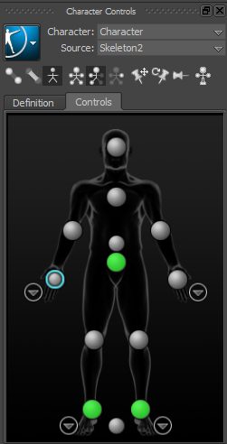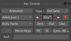Nothing happens because Pepe’s animation is controlled by the skeleton, not the Control rig. Before you can keyframe Pepe’s motion capture animation, you must plot (or bake) the skeleton animation onto the Pepe character Control rig.