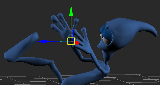In the following procedure, you set keyframes to the 3ds Max Pepe character you animated in the previous procedure (Animate the 3ds Max character) to resolve the animation issues with Pepe's hands.