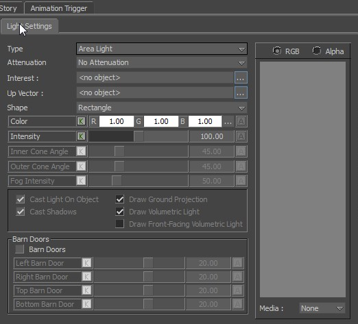Area light settings