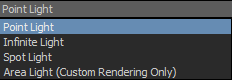 Radiates from the center of the light, illuminating all other models in the scene. The current color of the light is shown by the light. You cannot set the Cone Angle or Fog Intensity for Point lights.