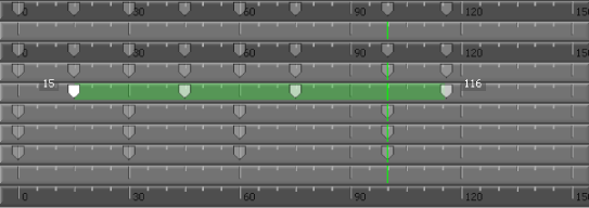 The Dopesheet Timeline area is an exploded view of the Action timeline in the Transport Controls window. In other words, keyframes set for different properties display separately in the Dopesheet window. When you edit visual keyframes on a Dopesheet timeline, the changes display on the Action timeline.