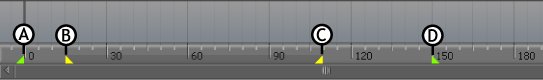 The start and end of the take (A and D). |
