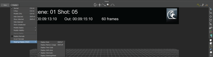 Display menu, it displays the intended information in the scene and does not appear under the HUD asset in the