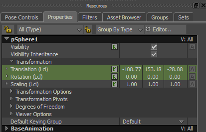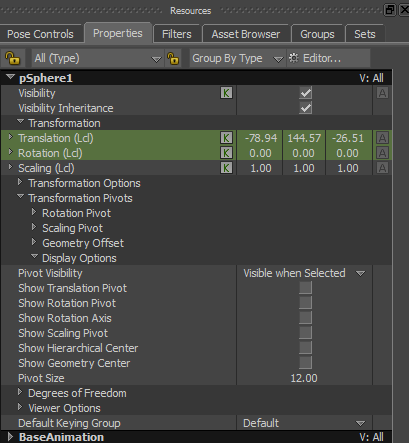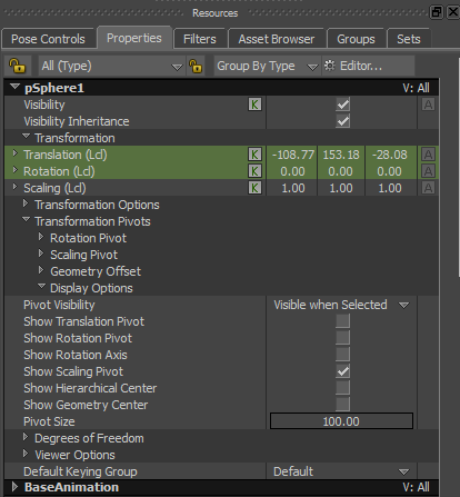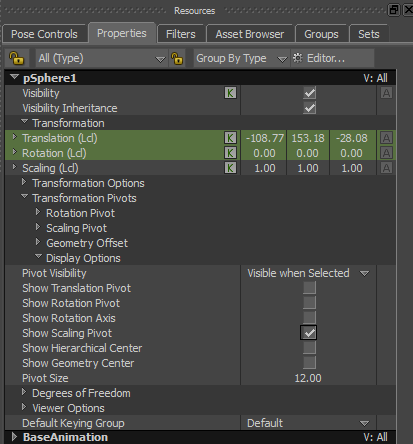 Transformation Pivots Display Options