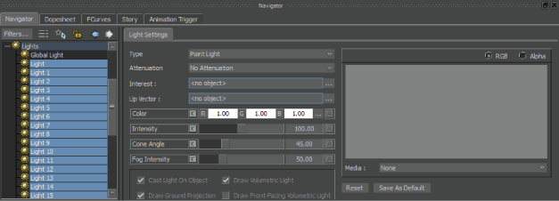 - The asset appears in the Viewer window. The Navigator window updates to display settings for the asset.