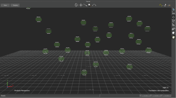 The Viewer window updates displaying assets being added to the scene. In the following figure, multiple lights are added.