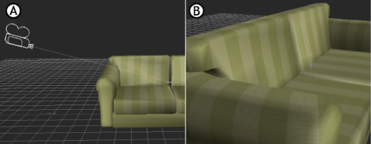 Camera views A. A custom camera viewed through the Producer Perspective B. The custom camera view.