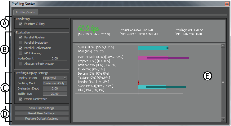In the virtual production environment, it is important that the Viewer gets automatically refreshed when working with different applications. To turn on the Always refresh viewer checkbox permanently, click the Save User Settings button in the Profiling Center. This saves the setting to the