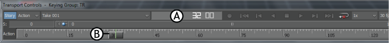 Transport Controls (detail) A. Current time B. Timeline indicator
