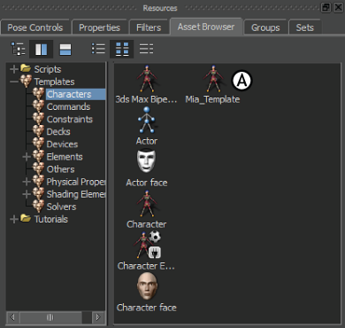 You can edit the 3ds Max Biped template and save your customized templates. Once you save the customized Biped template, it appears in the Asset browser > Characters folder.