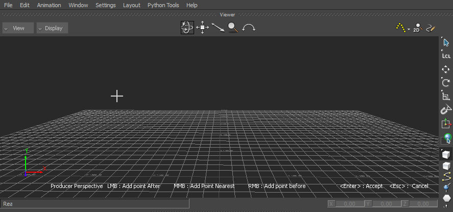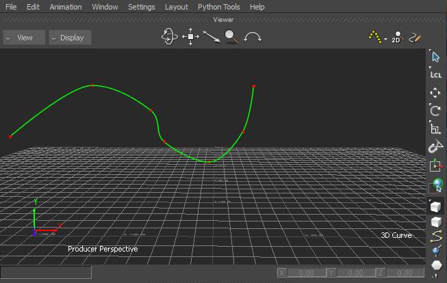 Viewer window displaying cursor and keyboard shortcuts for 3D Curve